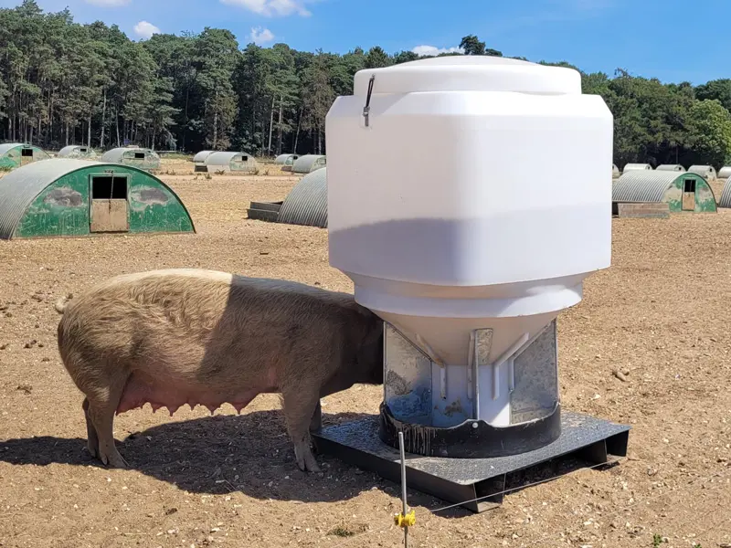 Our unique spring feed dispensing system discourages Verin, prevents piglets playing with the feed reducing feed waste.