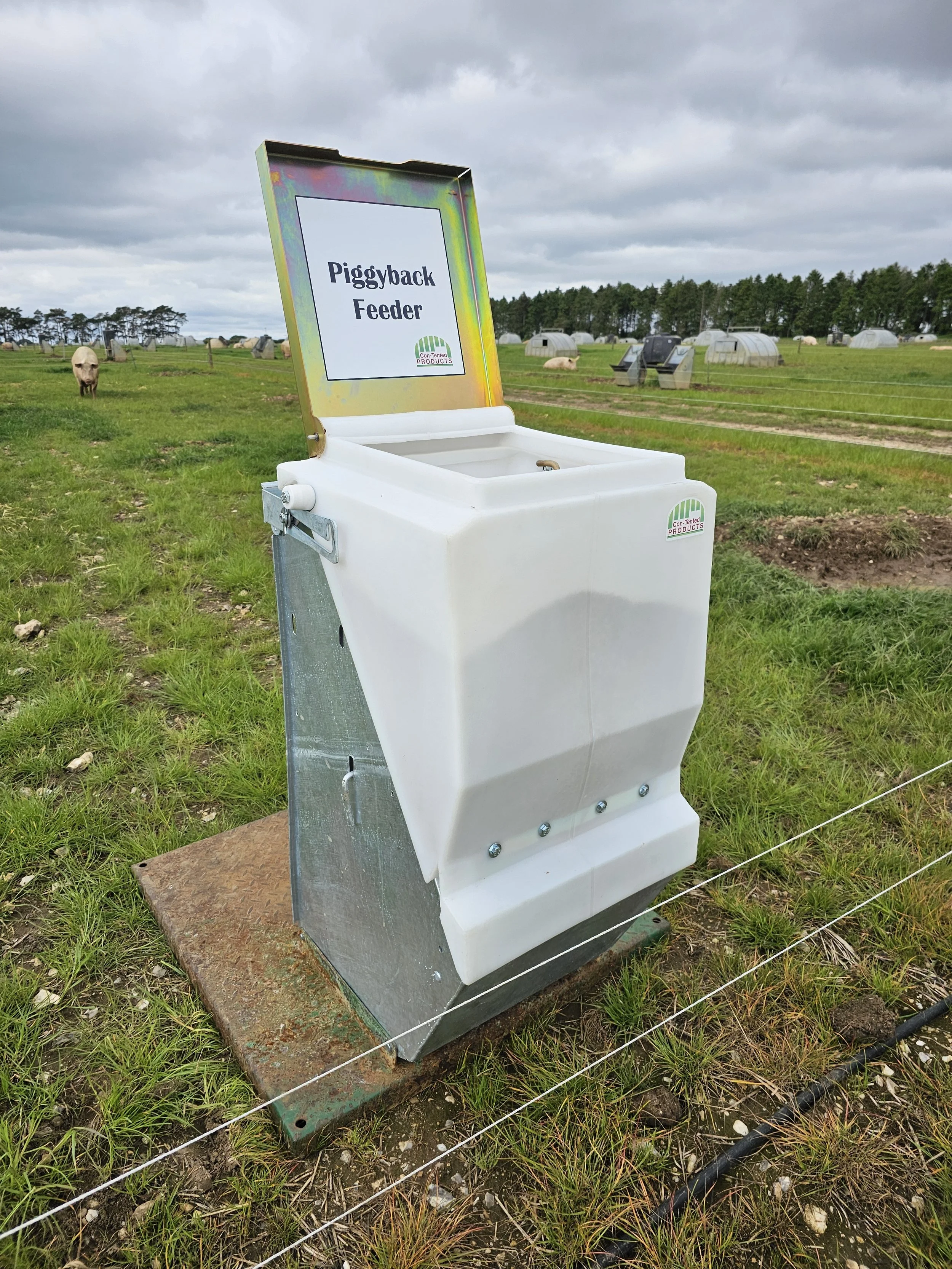 The simple to operate Piggyback feeder dispensing unit can ration 1kg of feed at a time and convert to feeding adlib after farrowing, especially suitable for feeding purebred stock and young sows where extra help is required to conserve body condition during lactation.